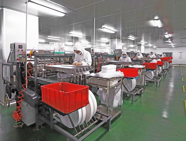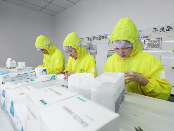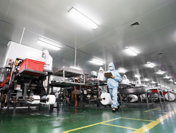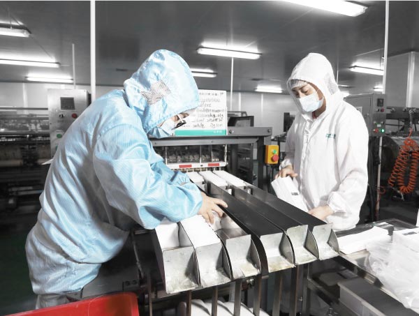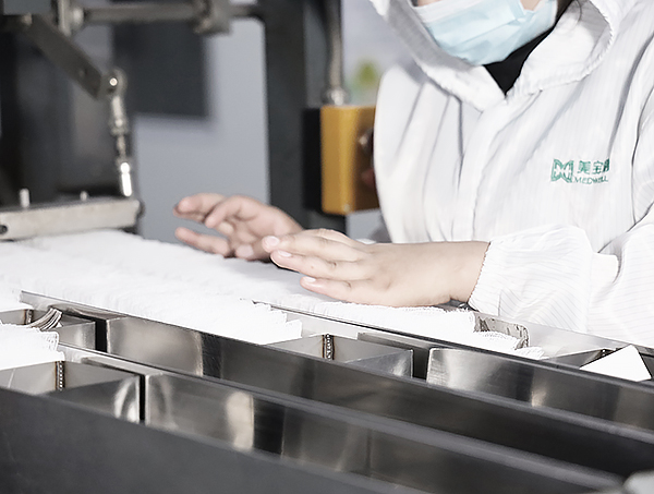 There are more than 100 employees in the production line of the abdominal pad workshop. The workshop mainly produces abdominal pads, hand folds, bandages and various rolling products. The workshop has 16 automatic folding machines, 4 elution all-in-one machines, 7 dryers, 7 quadruple folding machines, 4 folding machines, 4 code cloth machines and 1 curving dryer. Products through folding, sewing, washing, inspection, pressing, blister packaging, forming a complete set of production lines from raw materials to finished products.