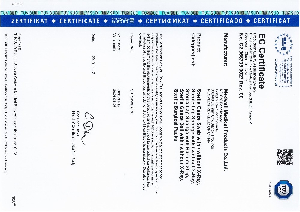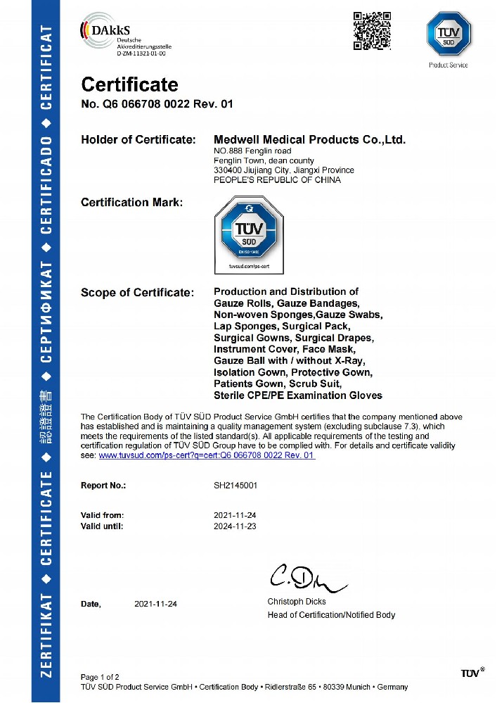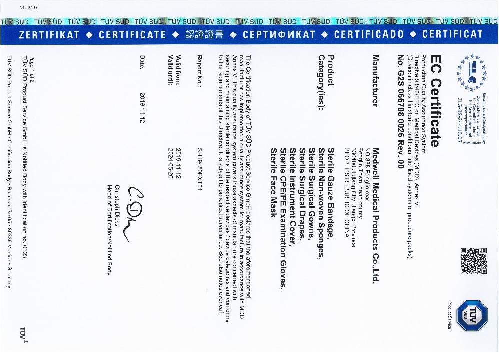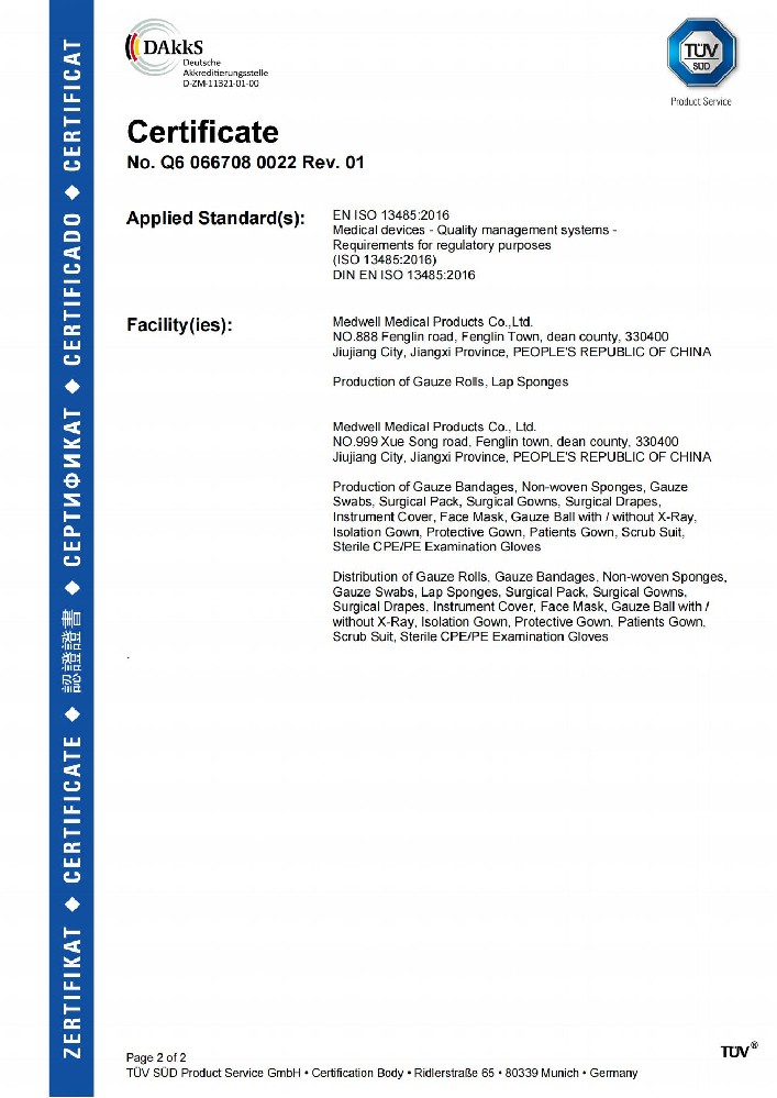 公司已通过TUV.PS公告机构的ISO13485认证,所有产品均有CE证书同时在美国FDA注册(注册号 3007360701)。确保从原料采购到最终成品的各种生产工艺流程的安全,保证产品质量。
